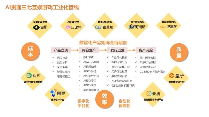 在AI于2023年成为显学之前,行业还在热议小游戏等风口,而当时的AI概念也更倾向于自然语言处理(NLP)和神经网络(如CNN)等方向。那时,三七互娱已经构建了比较完善的信息化、数字化的产品体系,早期内部系统跟AI关系不大。