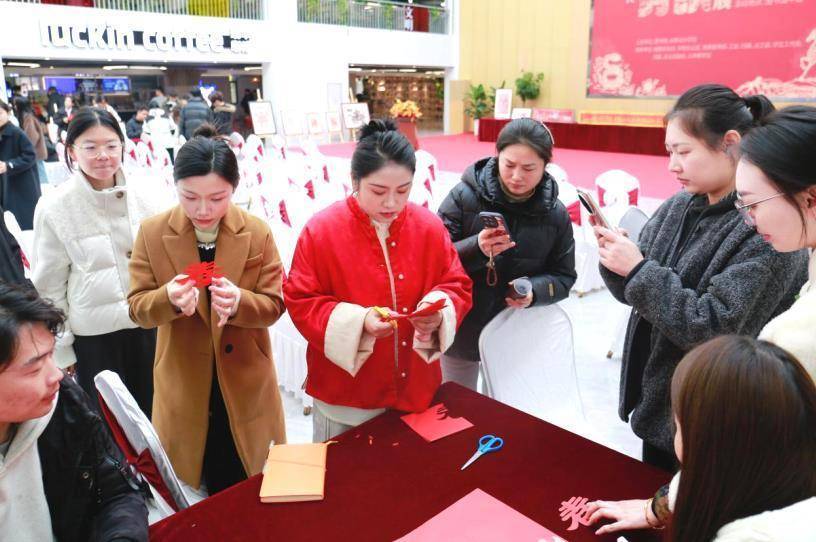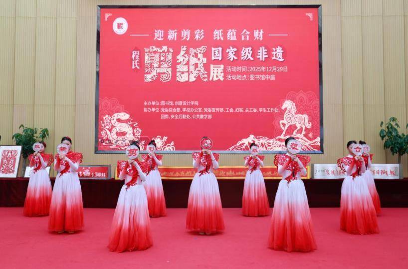 12月29日上午,“迎新剪彩 纸蕴合财——阜阳程氏剪纸国家级非遗展”在合肥财经职业学院图书馆二楼中庭开展。安徽省教育督导专员、校党委书记赵怀印,学校理事长聂晓静出席参观指导,强调以非遗传承推动美育创新,促进“文化传承+职业赋能”双赢发展。