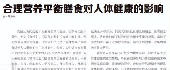 参考资料:[1]马小红.合理营养平衡膳食对人体健康的影响[J].中国食品工业,2022